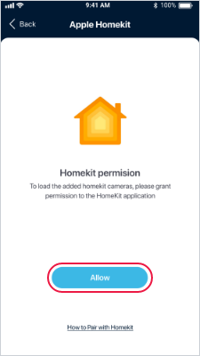 Step 2. Select „Apple HomeKit camera“ and allow access to the HomeKit app with the „Allow“ button.